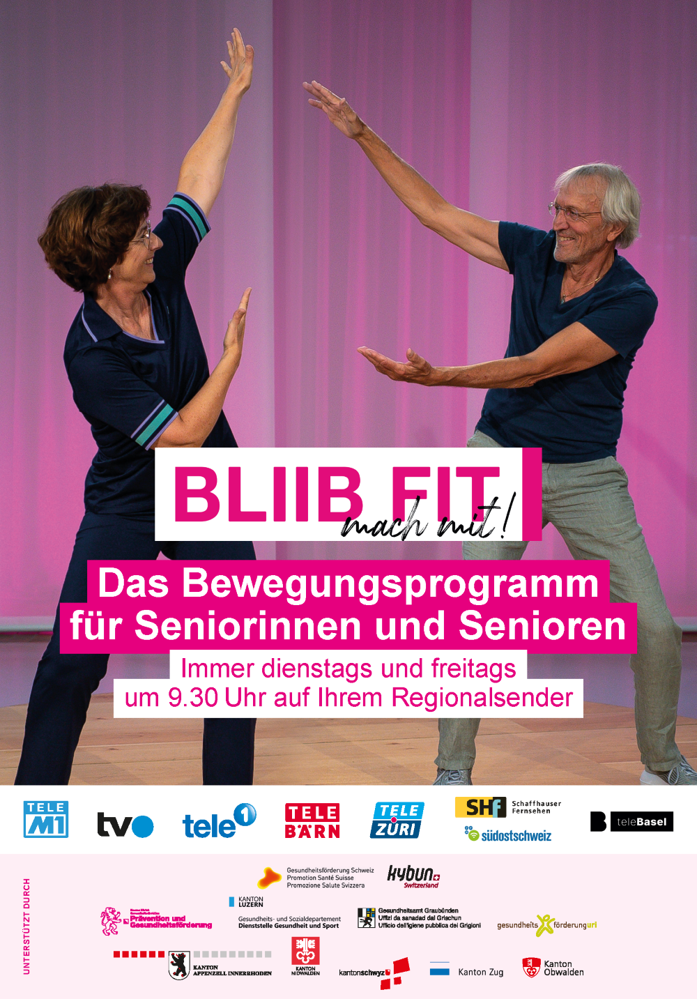Die Bewegungssendung «Bliib fit – mach mit» bietet älteren Menschen die Möglichkeit, mit einfachen und effektiven Übungen ihre Fitness zu steigern – ganz ohne Hilfsmittel und bequem von zu Hause aus.
